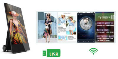 - Chargez simplement des images et des vidéos sur une clé USB insérée dans l’affichage, vos images et vidéos seront désormais diffusées en boucle continue.